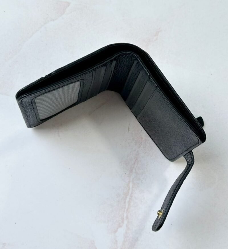 Si tu estilo se inclina hacia lo práctico, esta billetera es justo lo que necesitas. Aunque pequeña en tamaño, su interior está perfectamente diseñado para maximizar el espacio de almacenamiento. Incluye múltiples compartimientos para tarjetas, billetes y monedas, garantizando que cada elemento tenga su lugar